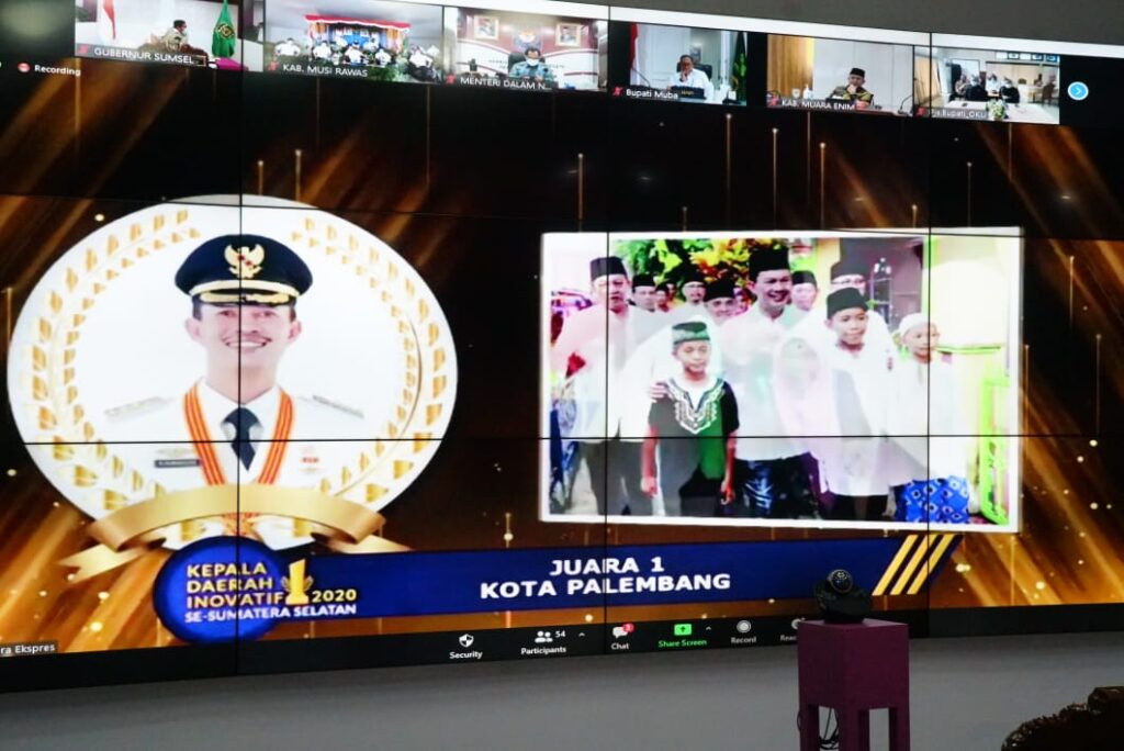 Kordanews – Meski sempat tertunda cukup lama, pemenang ajang pemilihan Kepala Daerah Inovatif 2020 di Sumsel yang memperebutkan tropi Menteri Dalam Negeri (Mendagri) akhirnya diumumkan, Rabu (18/11/20) sore secara virtual dari Command Center Pemprov Sumsel. Tak hanya dihadiri Mendagri Prof H.M. Tito Karnavian, pemilihan yang diselenggarakan Harian Sumatera Ekspress itu juga dihadiri langsung oleh orang nomor satu di Sumsel H.Herman Deru.