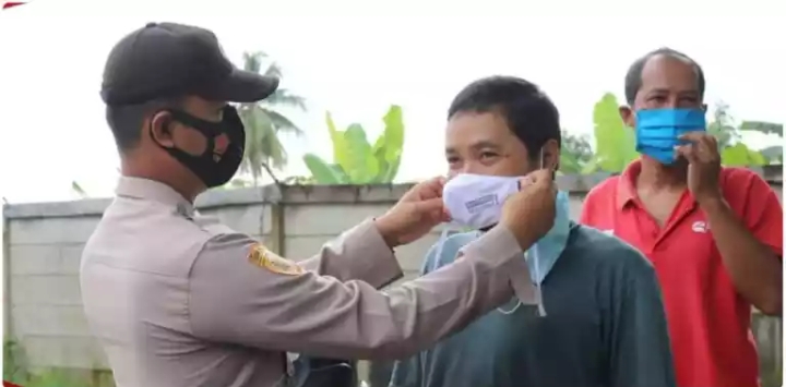Pembagian masker ini dilaksanakan oleh personel Polres Lahat yang di pimpin masing-masing perwira pengendali.