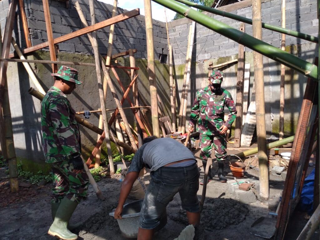 Kopda Ali dan rekan-rekan personil TNI pun dibantu masyarakat dengan semangat melaksanakan renovasi rumah Bapak Baedowi (64) Dsn. Ketapang RT 04/01, semua bahan yang dibutuhkan sudah disiapkan mulai dari Seng, kayu keras sampai paku yang dibutuhkan untuk menguatkan rangkaian kayu.