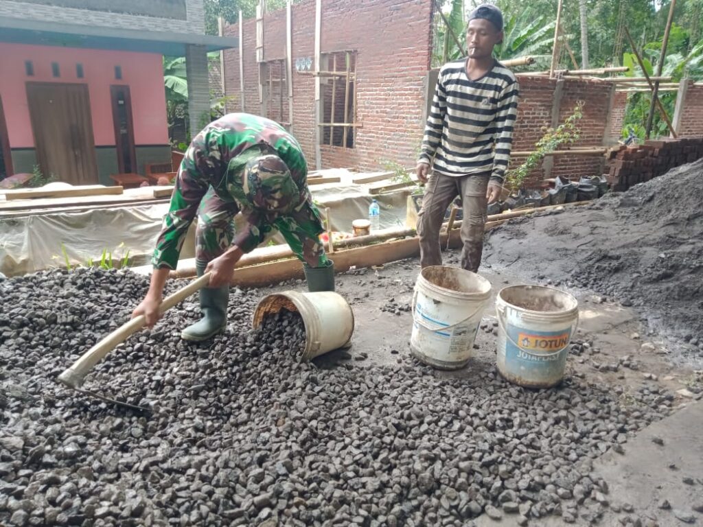 Sebuah bentuk kerja dan kebersamaan antara TNI dan masyarakat, ditunjukkan oleh Rusdin (34 tahun) yang menunggu Serda Agung (44 tahun) memasukan batu kris ke dalam ember.