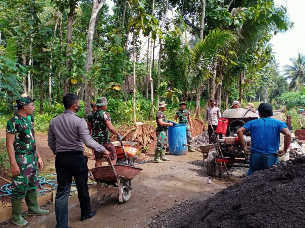 Sinergitas TNI dan Polri bersama warga Dusun Sarimulyo, Desa Ketapang, kecamatan Susukan Kabupaten Semarang terlihat kompak karena progam ini lebih maksimal bila dikerjakan bergotong royong sehingga target bisa tercapai, kemanunggalan TNI bersama rakyat terwujud adanya kerja sama antara mereka yang “sinergi”dari rakyat, untuk rakyat dan oleh rakyat.