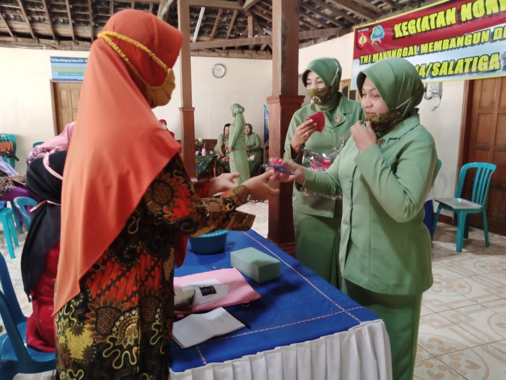 KORDANEWS – Di tengah Himbauan pemerintah agar masyarakat selalu menggunakan pelindung diri masker ketika di jalan raya maupun di tempat publik, ibu-ibu Persit Kartika Chandra Kirana (KCK) Kodim 0714/Slg membuat masker dan membagikannya kepada ibu ibu PKK