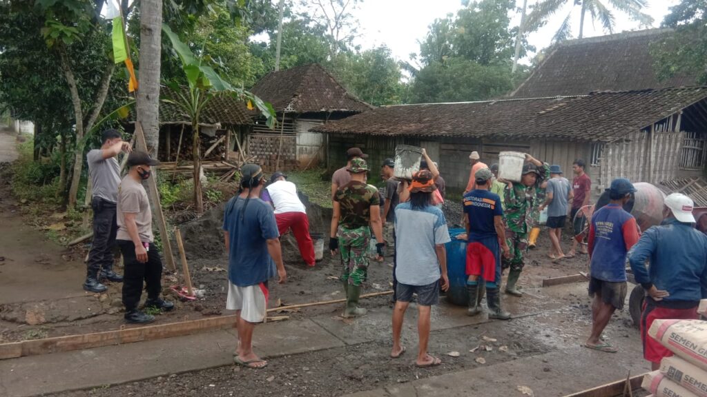 Sinergitas TNI, POLRI bersama warga Dusun Sarimulyo, Desa Ketapang, kec. Susukan Kab. Semarang terlihat kompak karena progam ini lebih maksimal bila dikerjakan bergotong royong sehingga target bisa tercapai.