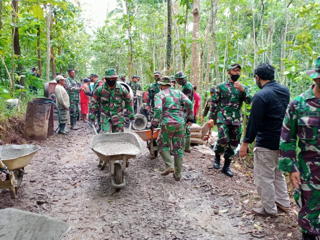 KORDANEWS — TMMD Regular ke-110 Kodim 07 14/ Salatiga sudah setengah perjalanan, pengerjaan pengecoran betonisasi jalan harus selesai tepat waktu.
