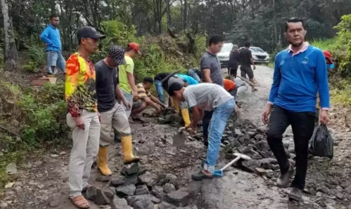 Sementara itu, Oking Rahandi Ketua Forom Kades Merapi Selatan mengungkapkan, kegiatan perbaikan jalan ditebing patung dikarenakan jalan tersebut kondisi berlubang dan menanjak.