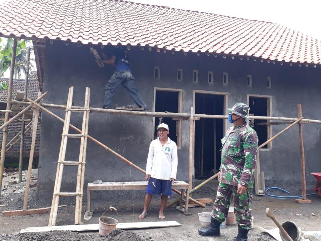 KORDANEWS — Anggota satgas TNI Manunggal Membangun Desa (TMMD) mengecek genting yang baru dari derasnya hujan di rumah sumarna (55) Desa ketapang, Kecamatan susukan , Kabupaten semarang. Penggantian genting ini guna untuk memperbaharui genting lama yang sering bocor menjadi yang baru.