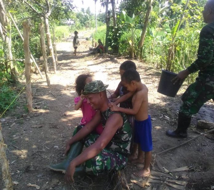 Salah satunya kedekatan anak-anak dengan anggota TMMD Dari Yonif 410/ Alugoro
