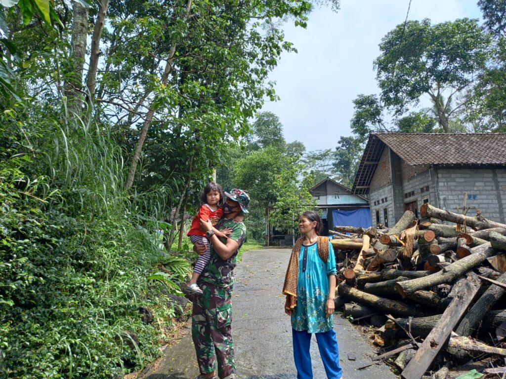 Seperti yang terjadi ketika Sertu Ngadiman Satgas TMMD Reguler ke-110 yang datang rumah Ibu Anik (45) warga Rt 02 Rt 01 warga Desa Ketapang yang merupakan orang tua Lia (2) mereka selama melaksanakan TMMD. Pihak keluarga terlihat sangat senang ketika bapak TNI datang kerumahnya.