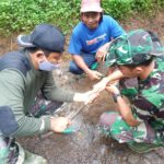 Kopka Agus Anggota TMMD terlihat tengah asyik memainkan alat cetok untuk merapungkan pekerjaan tersebut agar MCK Musholla Al Huda Dusun Sarimulyo Desa Ketapang Kecamatan Susukan cepat terlaksana dengan hasil maksimal.