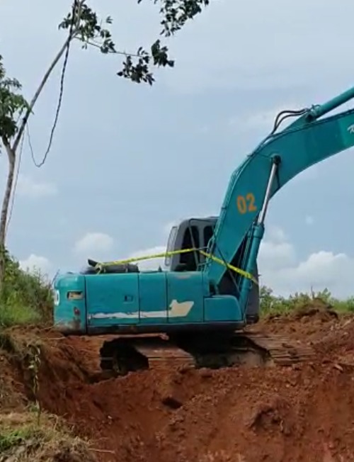 Tak perlu waktu lama, aparat kepolisian pun langsung bertindak cepat mendatangi lokasi dan memasang police line atau garis polisi di alat berat milik oknum preman yang mengeruk tanah di atas lahan milik Abdullah Sahab.