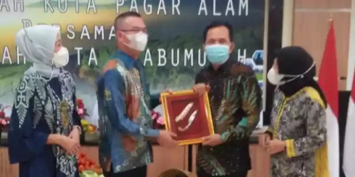 Dalam sambutannya Walikota Pagar Alam mengucapkan selamat datang di Kota Pagar Alam Kota yang sangat kami banggakan dimana kami diwariskan alam yang begitu sejuk serta berbagai wisata yang tersebar di wilayah Kota Pagar Alam dan mudah mudahan silaturahmi ini terus terjalin dan juga antara Kota Pagar Alam dengan Kota Prabumulih bisa meningkatkan kerja sama dibidang lainya. Dan dalam kesempatan itu Walikota Pagar Alam memberikan cindramata Kodok Betelok Kepada Walikota Prabumulih .