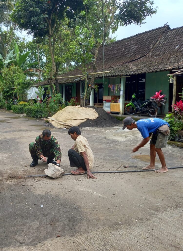 KORDANEWS — Hari ini minggu, 28/03/2021 salah satu anggota Satgas TMMD Sertu Ngadiman Membantu warga, terus melanjutkan pembuatan saluran air di Desa Ketapang Kecamatan Susukan, Kabupaten Semarang.