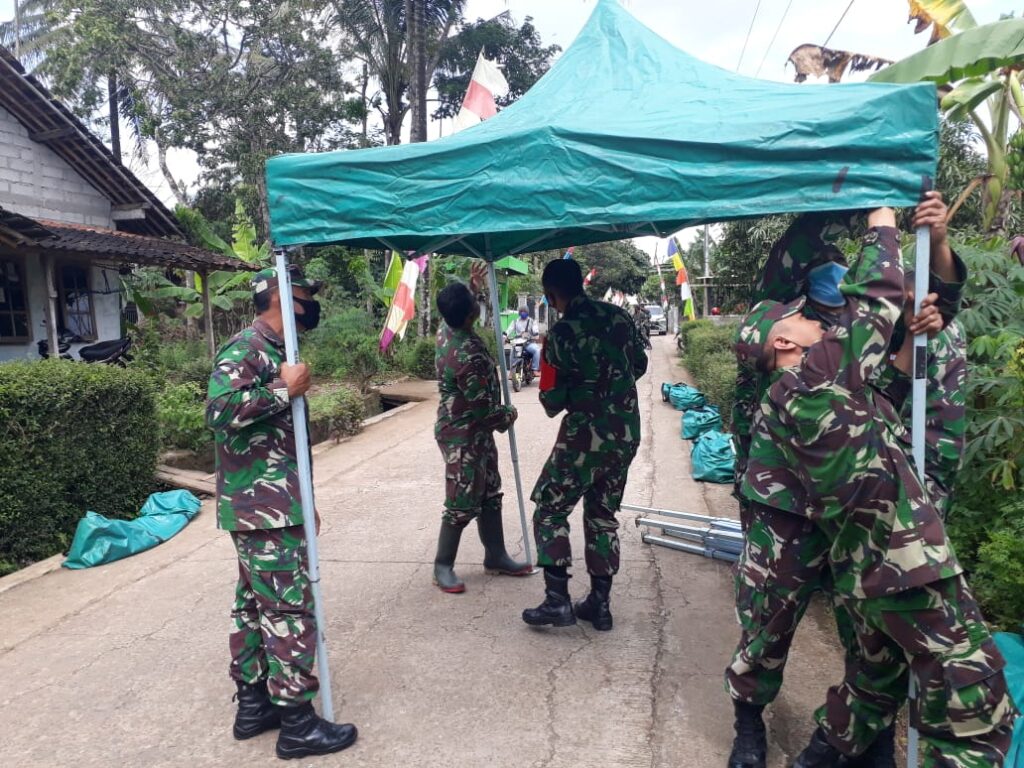 Hal itu terlihat dari lokasi pemasangan tenda di lokasi TMMD ini,mereka para Anggota Satgas,Masyarakat dan perangkat desapun ikut berperan aktif dalam pemasangan tenda.