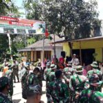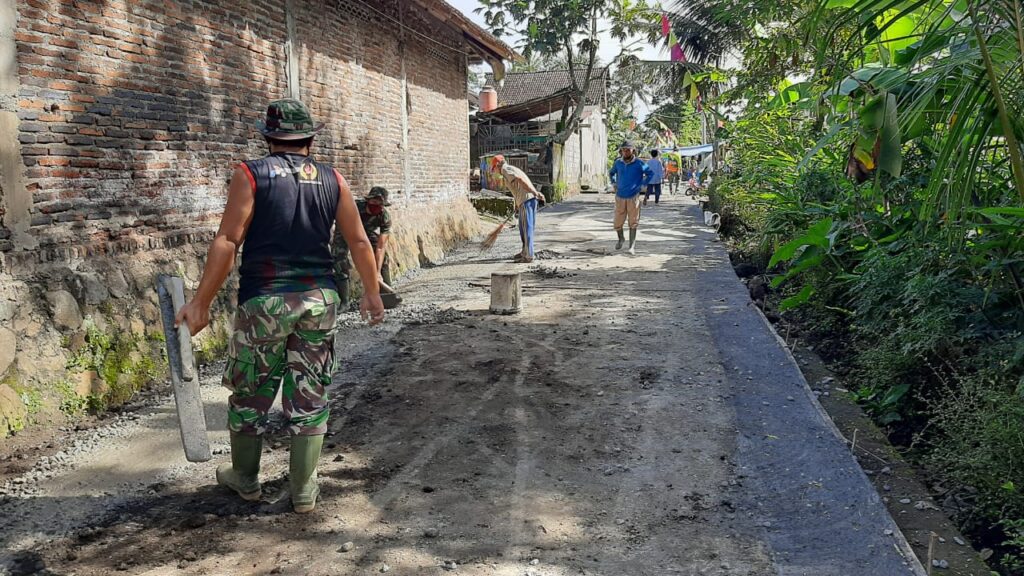 Ayo…ayo….teriak Sertu Agung(45) memberikan semangat kepada warga desa yang ikut membantu dengan menggunakan sapu, saling menjaga kepedulian, selalu berusaha memberikan yang terbaik, karena ada kesan tersendiri selama melaksanakan pekerjaan bersama-sama dengan warga tentunya.