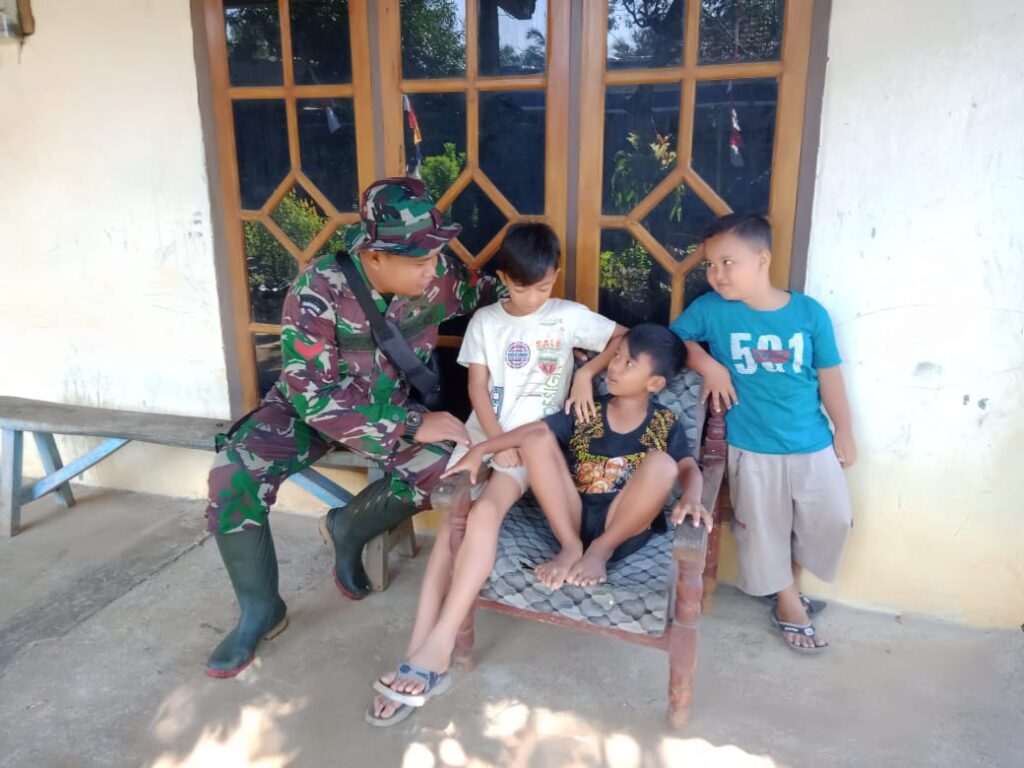 Seperti yang terlihat menjelang berakhirnya pelaksanaan TMMD Reguler Ke-110 Kodim 0714/Salatiga, Desa ketapang , Kecamatan susukan, Kabupaten semarang, Jawa Tengah, salah satu personel anggota Satgas TMMD Kopral Satu setiyono(38) sedang bermain bersama anak-anak di Desa Ketapang.