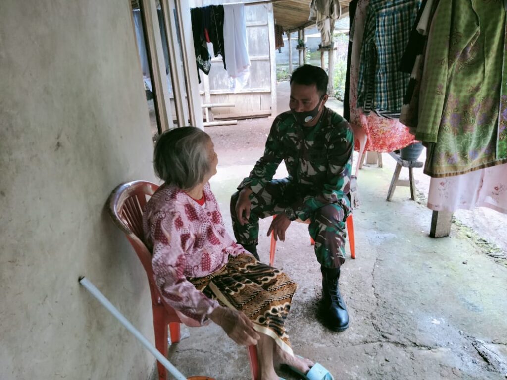 Nampak keakraban mantan anggota satgas TMMD ke-110 Kodim 0714/Salatiga Sertu Ngadiman dengan Mbah Satiyem (68) yang pernah di gendong untuk berobat gratis di Poskesdes satgas TMMD.