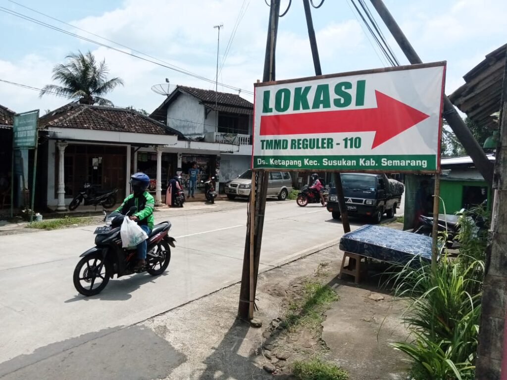 KORDANEWS – Papan penunjuk lokasi TMMD Reg-110 Kodim 0714/Salatiga di jalan masuk Desa Ketapang sampai kini masih terpasang, Minggu (04/04/2021)