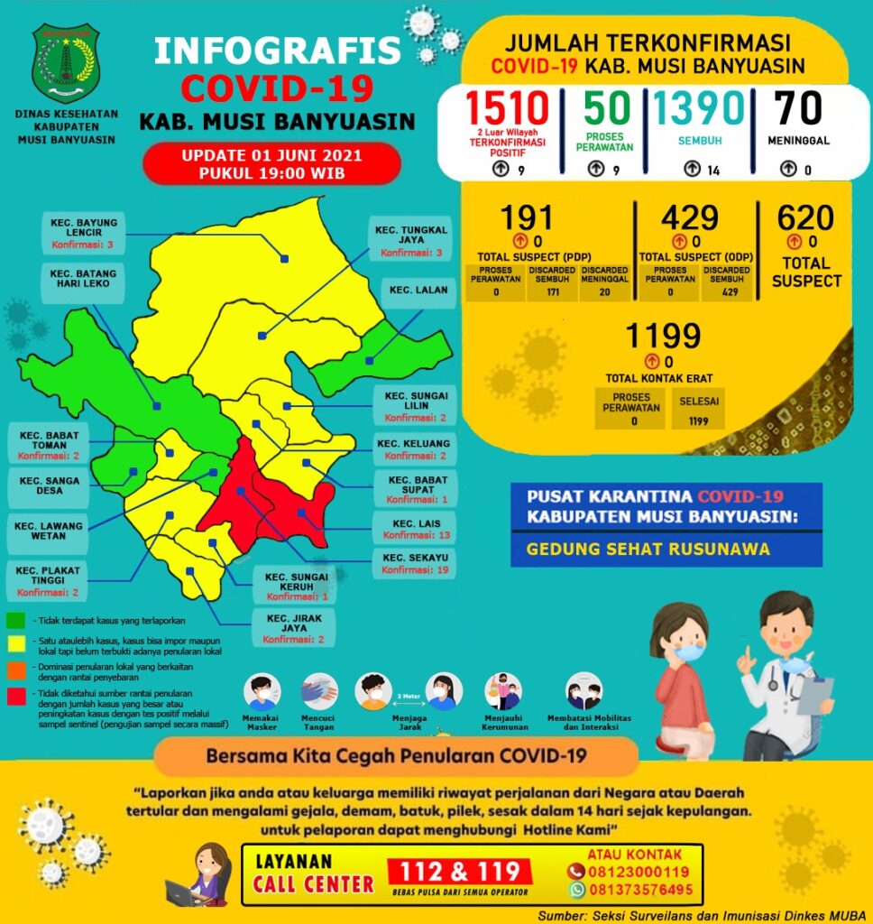 “Ada penambahan 14 kasus sembuh dan 9 terkonfirmasi positif per 1 Juni 2021,” ungkap Jubir Gugus Tugas Penanganan Covid-19 Muba, Seftiani Peratita.