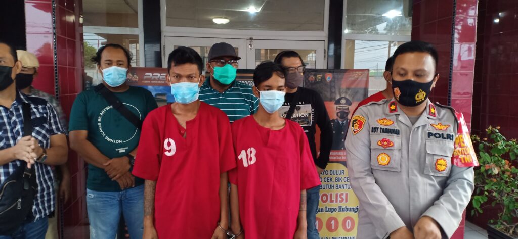 “Kedua tersangka ini sebelumnya dikejar korban saat beraksi di Jl Angkatan 45. Kemudian kabur ke Jl Demang Lebar Daun, lalu ditangkap warga kemudian kita amankan,” terang Kapolsekta IB I Kompol Roy Tambunan SIK didampingi Kanit Reskrim Iptu Arlan Hidayat SH, saat merilis kasusnya Kamis (17/6/21).