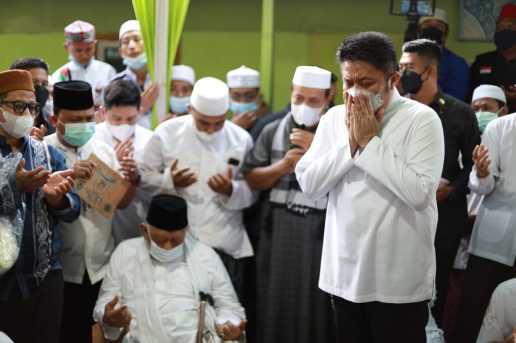 kordanews – Kabar berpulangnya Imam besar Masjid Agung Sultan Mahmud Badaruddin II Jayo Wikramo, KH Ahmad Nawawi Dencik Al-Hafidz pada Minggu (27/6) siang tak hanya mengejutkan masyarakat banyak tapi juga Gubernur Sumsel H. Herman Deru. Karena itupula Gubernur Herman Deru ikut langsung menghadiri prosesi pemakaman almarhum di Pondok Pesantren Thafizh Putra Ahlul Qur’an, Senin (28/06).
