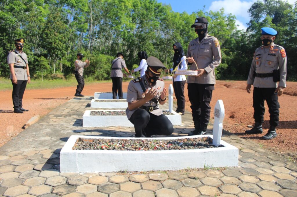Kordanews – Sambut Hari Ulang Tahun (HUT) Bhayangkara ke-75 tahun, 1 Juli 2021 mendatang, Kapolres Banyuasin AKBP Imam Tarmudi SIk MH dan jajarannya berziarah ke Taman Makam Pahlawan (TMP) Banyuasin di Jalan Lingkar Sekojo Banyuasin, Kelurahan Kedondong Raye, Kecamatan BA III dan Kabupaten Banyuasin.
