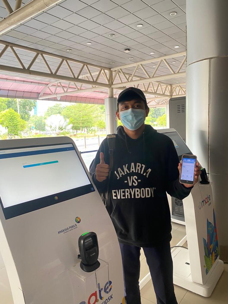 Caranya sangat mudah, cukup menunjukkan QR-Code yang ada di aplikasi PeduliLindungi. (Buka Aplikasi, klik Paspor digital, klik hasil test Covid-19 akan keluar QR-Code), Scan QR-Code untuk validasi dokumen, jika hasilnya: “Layak Terbang” penumpang langsung ke Meja Check in untuk mendapatkan boarding pass, “Tidak Layak Terbang” penumpang ke Meja KKP untuk validasi dokumen secara manual.
