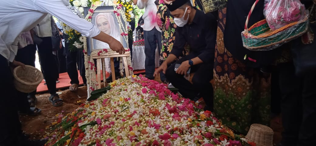 Jenazah putri sulung dari Gubernur Sumsel, Heman Deru,itu sebelumnya disalatkan di Griya Agung kemudian dimakamkan di area pemakaman keluarga di TPU Gandus, Palembang, Jumat (20/8) sekitar pukul 10.20 WIB.