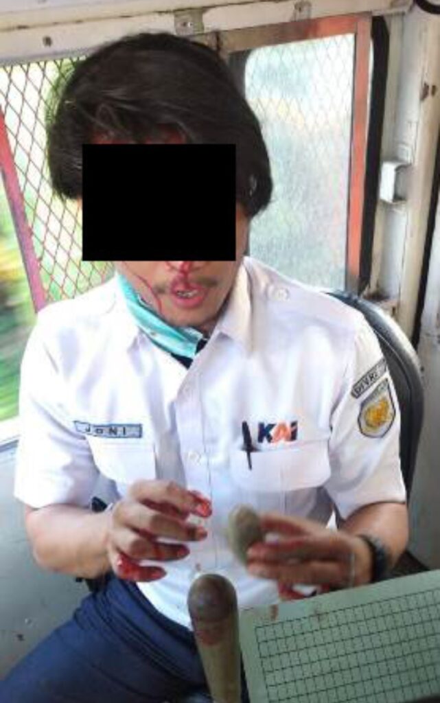 Karena aksi lemparan batu oleh orang tak dikenal, seorang masinis tujuan Lahat-Sukacinta, Sumatera Selatan, terluka dibagian kepala akibat dilempari batu oleh orang tak dikenal.
