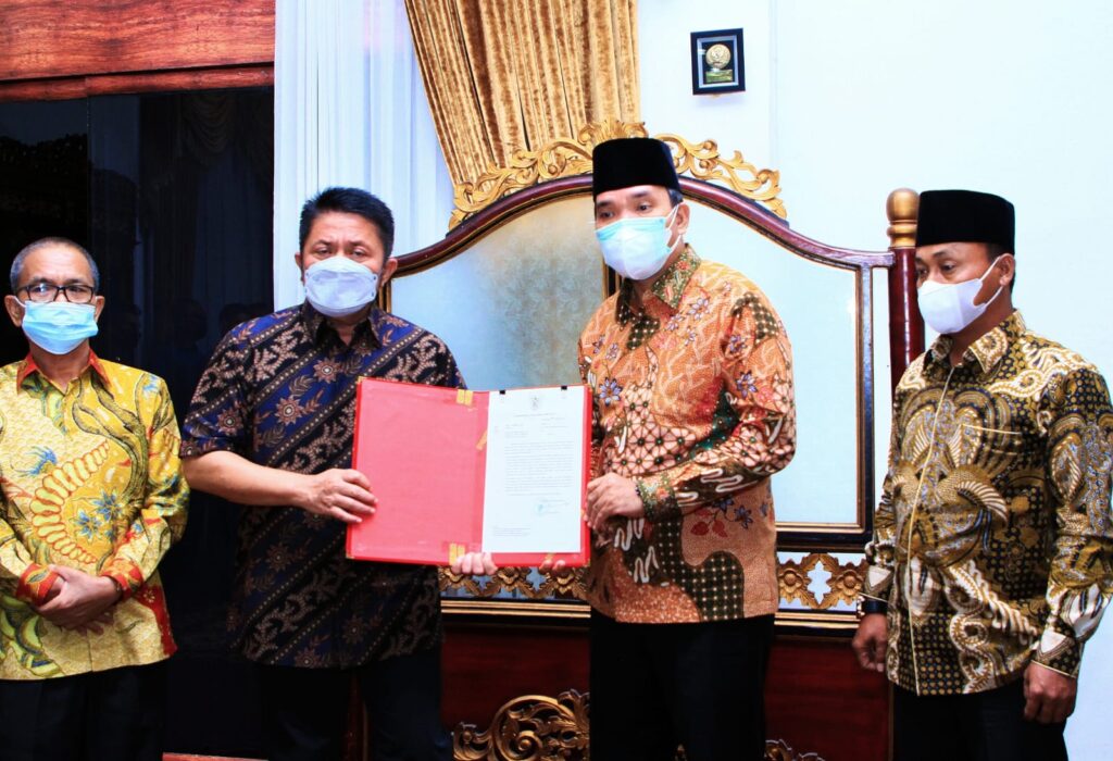 KORDANEWS – Gubernur Sumsel Herman Deru, Minggu (17/10/2021) malam secara resmi menyerahkan Surat Keputusan (SK) Pelaksana Tugas (Plt) Bupati kepada Wakil Bupati Muba Beni Hernedi, adapun SK tersebut bernomor surat 130/3105/I/2021 perihal Penugasan Wakil Bupati Muba sebagai Pelaksana Tugas Bupati Muba.