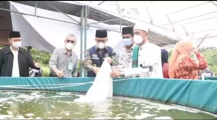 KORDANEWS – Walikota Pagar Alam Alpian Maskoni meresmikan bantuan sarana dan prasarana budidaya ikan lele sistem Bioflok, di Pondok Pesantren Izzul Qur’an, Dusun Kerinjing, Kelurahan Agung Lawangan, Kota Pagar Alam, Jum’at (19/11/2021).
