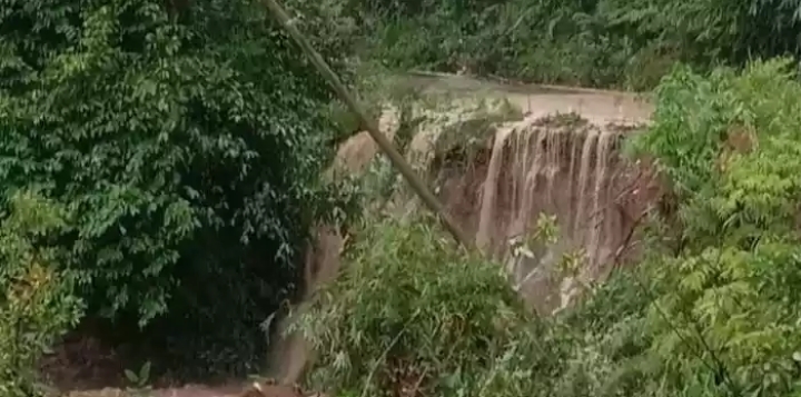 Hujan deras yang mengguyur wilayah kecamatan Mulak Ulu Kabupaten Lahat Sumatera Selatan pada Kamis (16)12/2021) memang cukup lama, hingga menyebabkan bibir jalan yang persis didinding sungai air mulak atau sebelum jembatan.