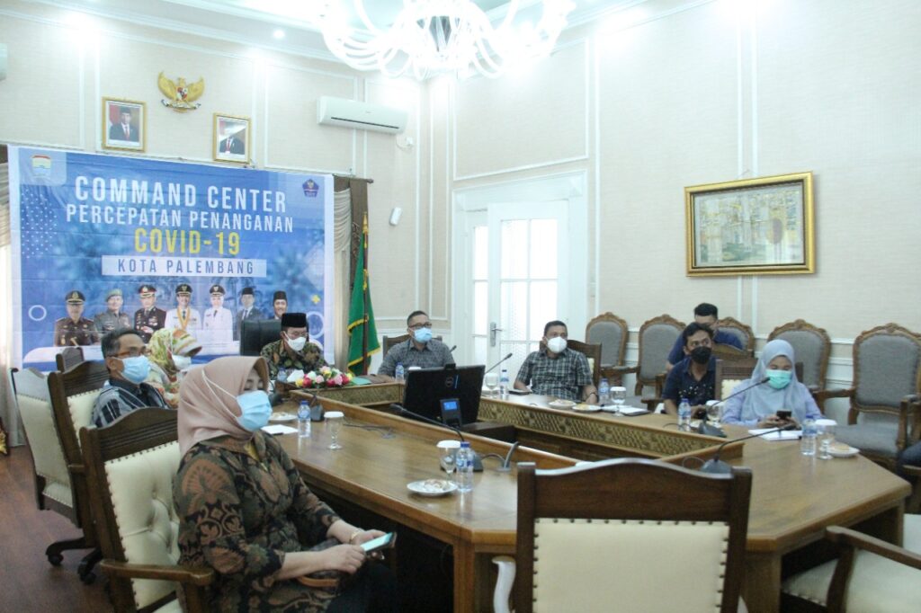 KORDANEWS-Harnojoyo Walikota Palembang adakan rapat bersama Menteri Koordinator Bidang Perekonomian Arilangga Hartanto melalui Virtual membahas masalah perkembangan Covid 19.