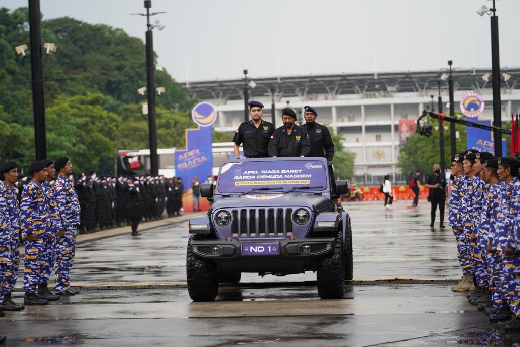 Kordanews – Garda Pemuda NasDem (GPND) menggelar Apel Siaga Baret di Parkir Timur Senayan, Jakarta Pusat, Rabu (15/6). Apel Siaga Baret digelar sebagai persiapan menjelang pembukaan Rapat Kerja Nasional (Rakernas) NasDem 2022 yang digelar mulai 15-17 Juni 2022.