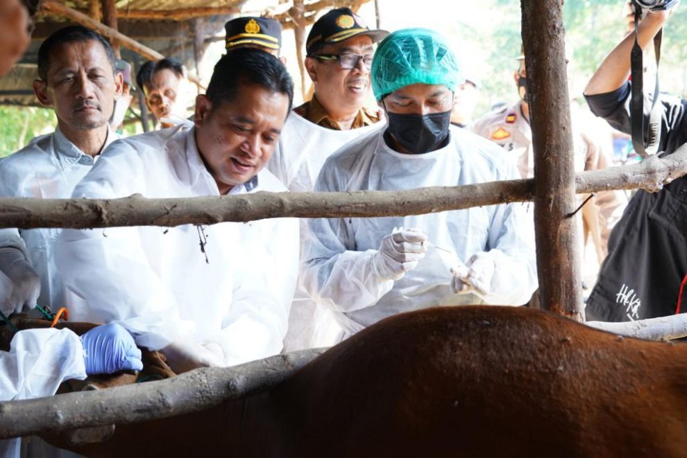 Pelaksanaan vaksinasi ini ditinjau langsung oleh Bupati Banyuasin H. Askolani bersama para pimpinan Forum Komunikasi Pimpinan Daerah (Forkopimda) Kabupaten Banyuasin sebagai langkah strategis dan tindakan kewaspadaan masuknya hewan kurban dari wilayah tertular dan menjaga wilayah bebas tetap bebas dari PMK. Ini juga merupakan strategi melalui penerapan biosekuriti kandang dan pengetatan lalu lintas hewan ternak dan vaksinasi.