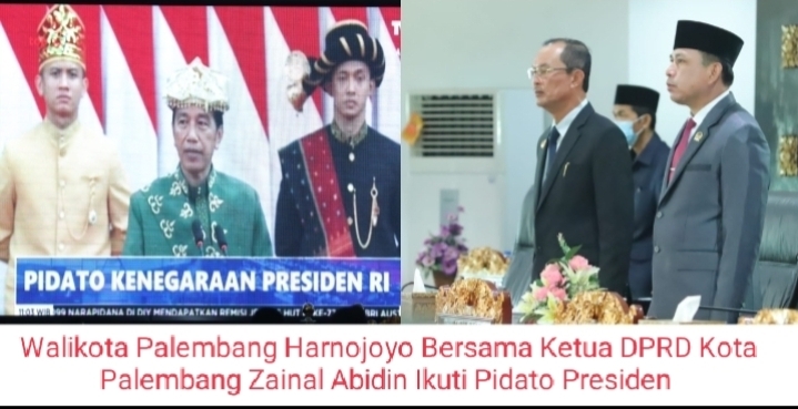 KORDANEWS-Harnojoyo bersama Zainal Abidin dan Forum Komunikasi Pimpinan Daerah (Forkopimda), jelang peringatan Hari HUT RI Ke-77, mengikuti Paripurna Istimewa dan Pidato Kenegaraan Presiden Republik Indonesia, Joko Widodo di Ruang Rapat Paripurna DPRD Kota Palembang.
