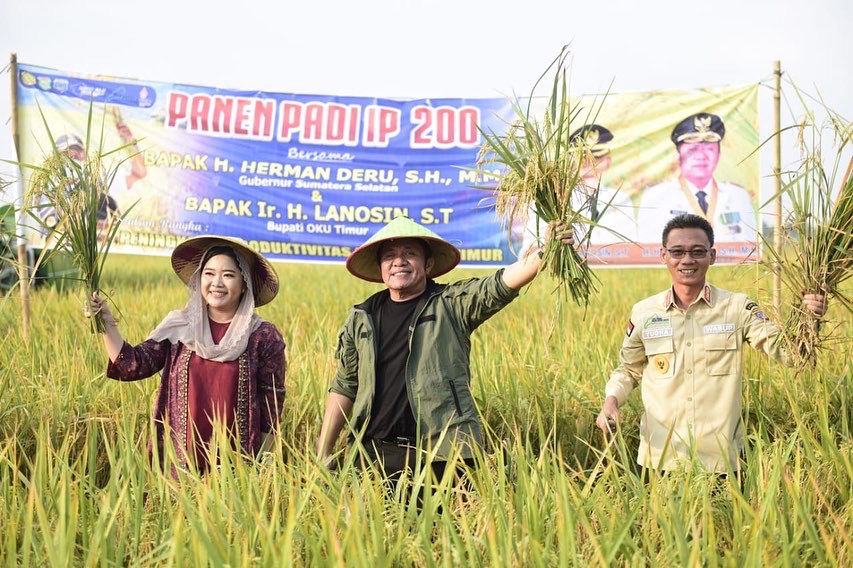 Atas dasar itu pula, Gubernur Herman Deru gencar mensosialisasikam program Gerakan Sumsel Mandiri Pangan (GSMP) hingga ke desa-desa. Salah satunya dengan melakukan panen padi IP200 dan menanam benih pepaya California saat kunker ke Desa Minanga Tengah, Kecamatan Semendawai Barat, Kabupaten OKU Timur, Rabu (28/9) sore.