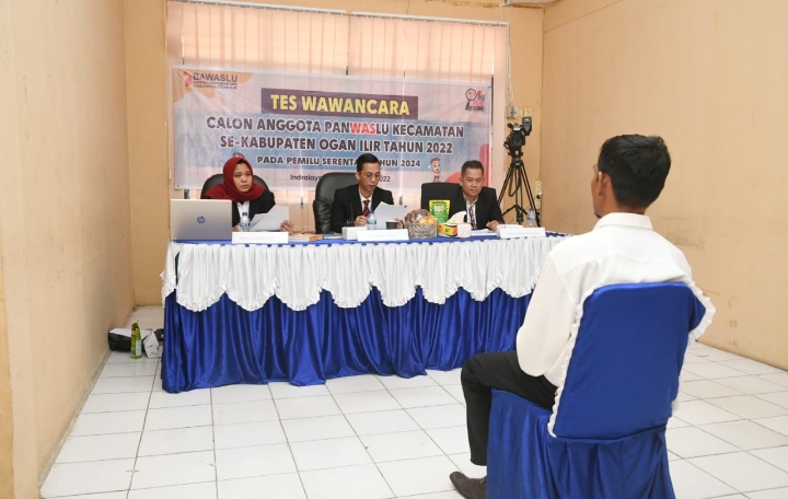 KORDANEWS – Badan Pengawas Pemilihan Umum (Bawaslu) Kabupaten Ogan Ilir menguji atau melakukan tes wawancara enam besar calon Pengawas Pemilihan Umum Kecamatan (Panwascam) yang tersebar di 16 Kecamatan yang ada di Kabupaten Ogan Ilir di Seketariat Bawaslu Ogan Ilir.