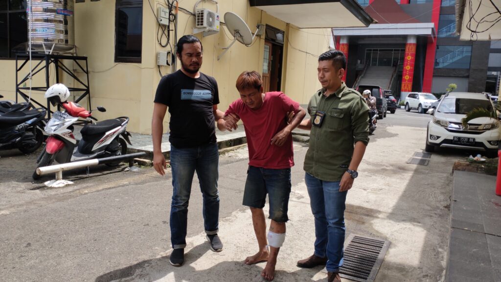 Hartono (46) warga Bambang Utoyo Lr Bugis Kacamtan Ilir Tomur 2 ini hanya meringis kesakitan setelah peluru anggota pimpinan Kanit 4 Iptu Taufik Hidayat dan Panit Ipda Maryanto menembus kaki sebela kirirnya. Setelah berusaha mencoba melarikan saat akan ditangkap.Kamis (3/11/22).