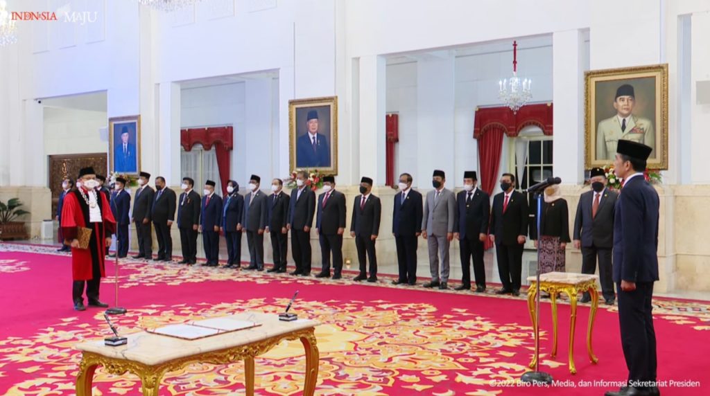 KORDANEWS – Presiden RI Joko Widodo (Jokowi) menyaksikan Pengucapan Sumpah/Janji Hakim Konstitusi oleh Guntur Hamzah di Istana Negara, Jakarta, Rabu (23/11/2022) pagi.