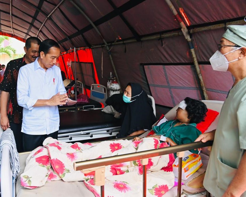 KORDANEWS – Presiden RI Joko Widodo (Jokowi) mengunjungi Rumah Sakit Umum Daerah (RSUD) Sayang Cianjur, di Kabupaten Cianjur, Provinsi Jawa Barat, pada Kamis (24/11/2022). Presiden ingin memastikan bahwa para pasien korban terdampak gempa Cianjur ditangani dengan baik.