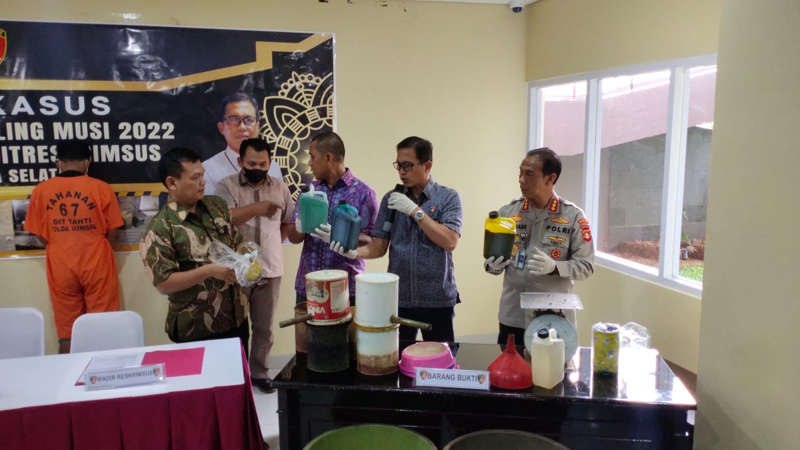Direktur Reskrimsus Polda Sumsel, Kombes Pol M Barly Ramadhany SH SIK didampingi Kabid Humas, Kombes Pol Supriadi mengatakan, bahwa ungkap kasus yang dilakukan anggotanya mengenai aktifitas pengoplosan BBM jenis pertalite dengan minyak olahan/ sulingan, di Desa Karang Raja, Kecamatan Karang Raja, Kabupaten Muara Enim, Kamis (1/12) sekitar pukul 16.30 WIB didaptkan kandungan pertalite olahan 100 persen bahan kimia.