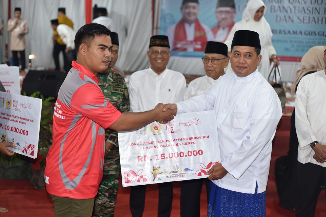 Bupati Banyuasin menjelaskan, Bonus ini diberikan karena para atlet dan official yang telah berhasil berjuang dan mengharumkan Kabupaten Banyuasin pada ajang Porprov di Oku Raya pada tahun lalu.