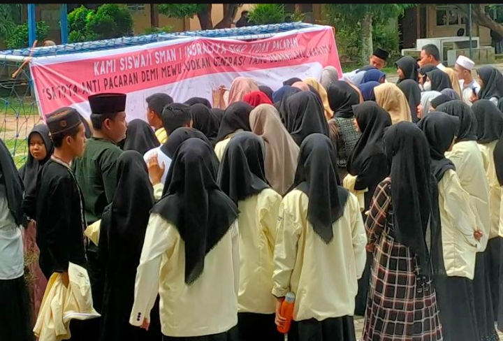 Usai menggelar Isra Mikraj dengan menghadirkan penceramah Dr M Saiyid Mahadhir LC, MAg. para siswa yang tergabung ekstra kurikuler Rohani Islam (Rohis) dengan pembinanya Ibu Maryani MA melakukan launching gerakan anti pacaran .