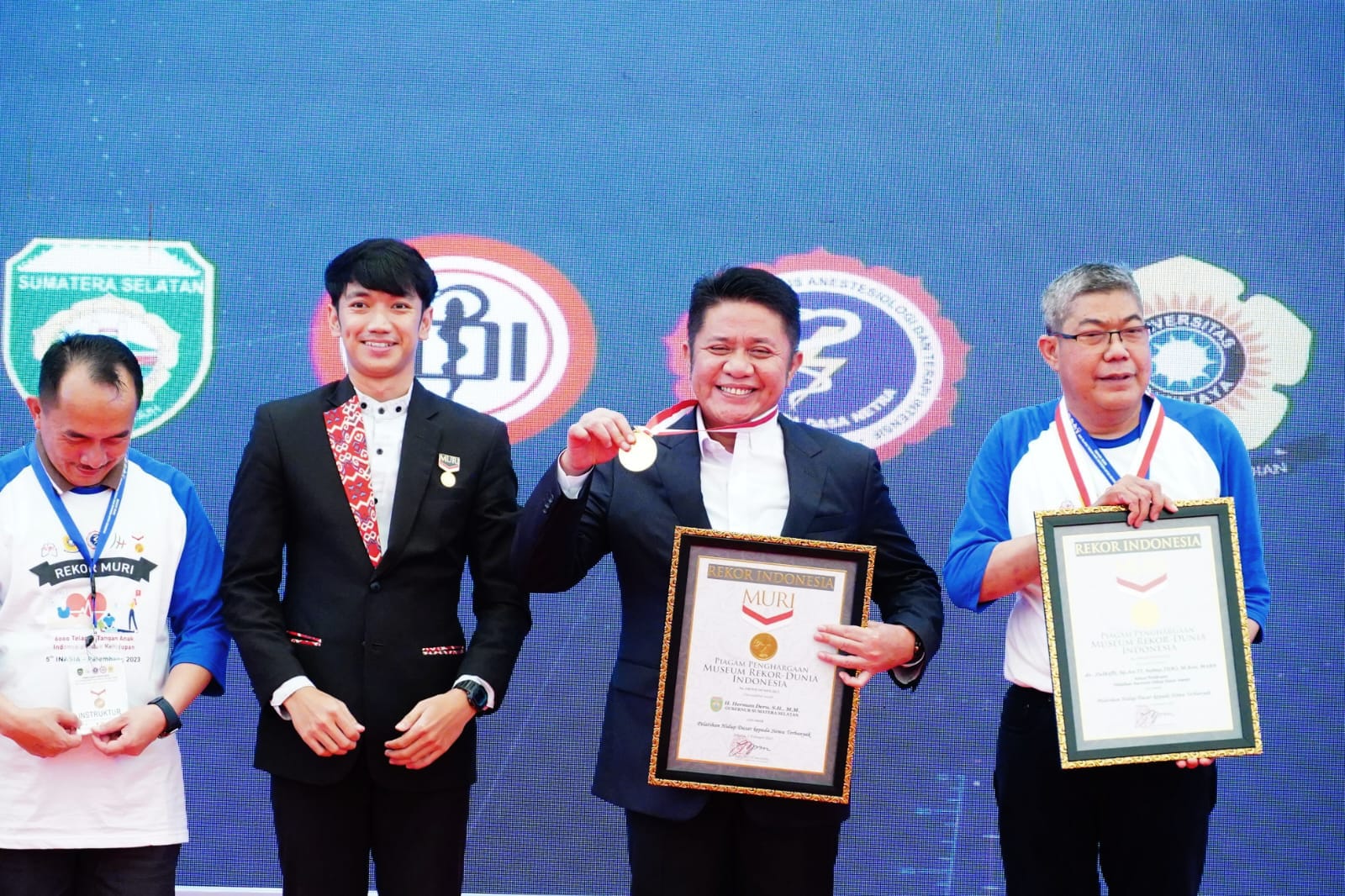 Penyerahan simbolis penghargaan Rekor Muri tersebut diterima langsung oleh Gubernur Sumsel H Herman Deru dalam rangkaian kegiatan Pelatihan Bantuan Hidup Dasar yang digelar Indonesian Society Of Intensivist Anesthesiologist (INASIA) bertempat di Dinning Hall Jakabaring Sport City Palembang, Minggu (5/2) pagi.