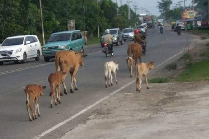 Sebelumnya, akibat berkeliarannya hewan berkaki 4 dijalan raya menyebabkan bagian depan kendaraan atau mobil salah seorang pengendara yang melintas rusak dan penyok.