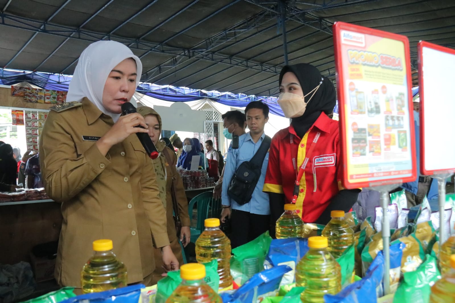Bahkan dari 46 peserta yang memenuhi dibawah tenda halaman kantor lurah tersebut, Fitri menyempatkan bertanya secara langsung komoditas yang dijual dan harga yang di patok.