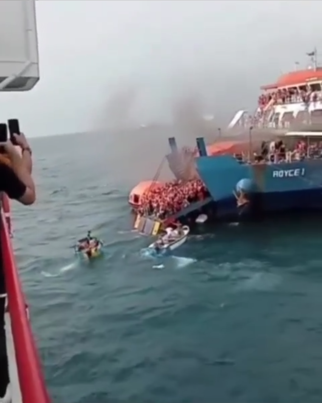 Dikutip dari video yang diunggah akun medsos lainnya @info.banten, sejumlah penumpang terlihat mengenakan pelampung di dek kapal.
