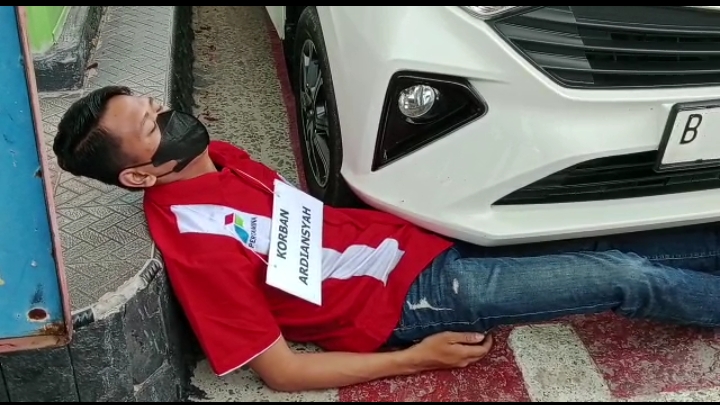 Setelah berhenti selama beberapa detik, kendaraan tersangka melaju agak menyerong ke kanan dan menabrak korban yang sedang duduk.
