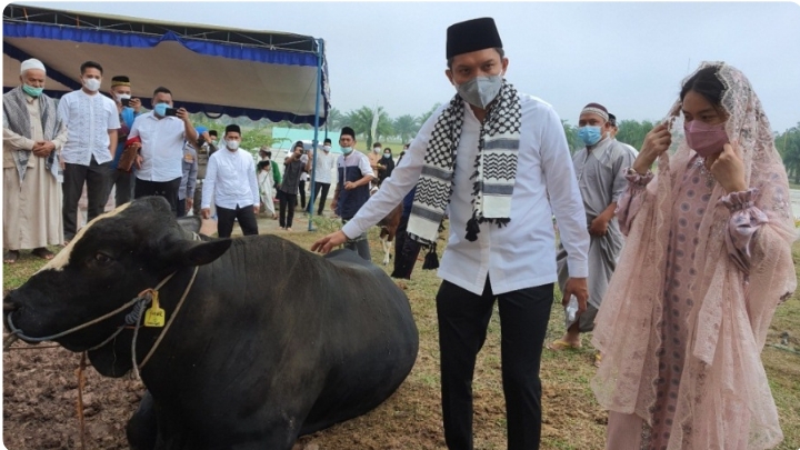 “Tahun ini Jemaah Masjid Agung An-Nur melakukan pemotongan hewah kurban sebanyak 6 ekor, dan memang satu diantaranya Kurban dari Bupati Kita , Panca Wijaya Akbar,’’kata Ustadz Gusti H M Ali.