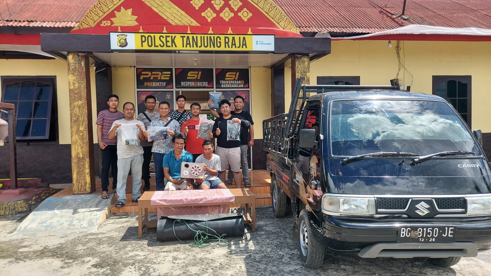 Kedua tersangka beserta barang bukti utama yakni mobil pikap Suzuki Carry dengan plat nomor BG 8123 TD warna hitam, dibawa ke Mapolsek Tanjung Raja.
